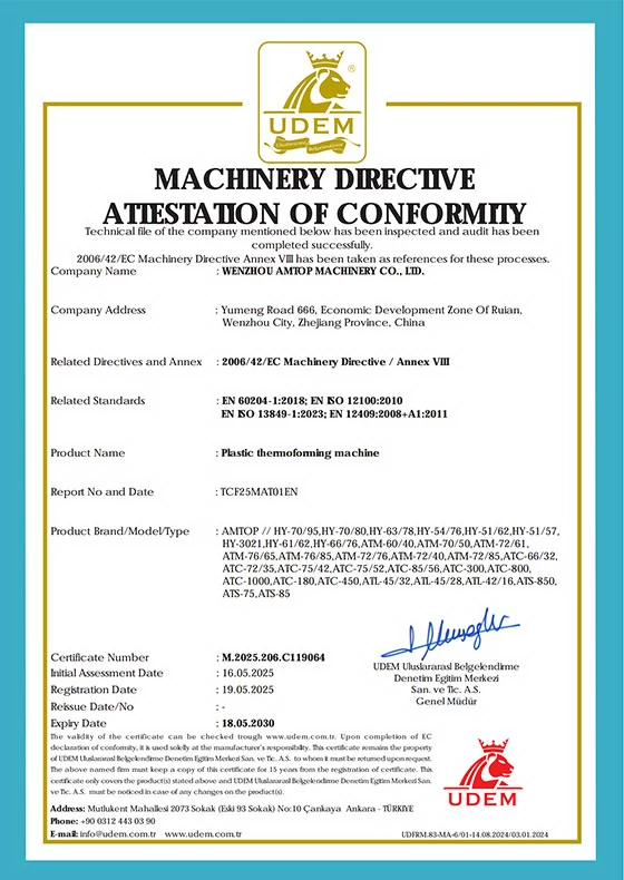 Wenzhou Amtop Machinery Company specializes in the design and manufacture of plastic thermoforming and sheet extrusion equipment, delivering complete solutions for plastic thermoforming and packaging production.