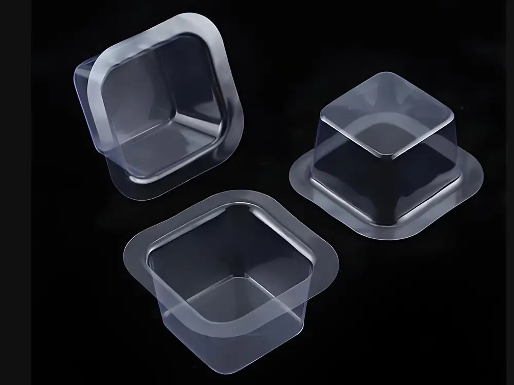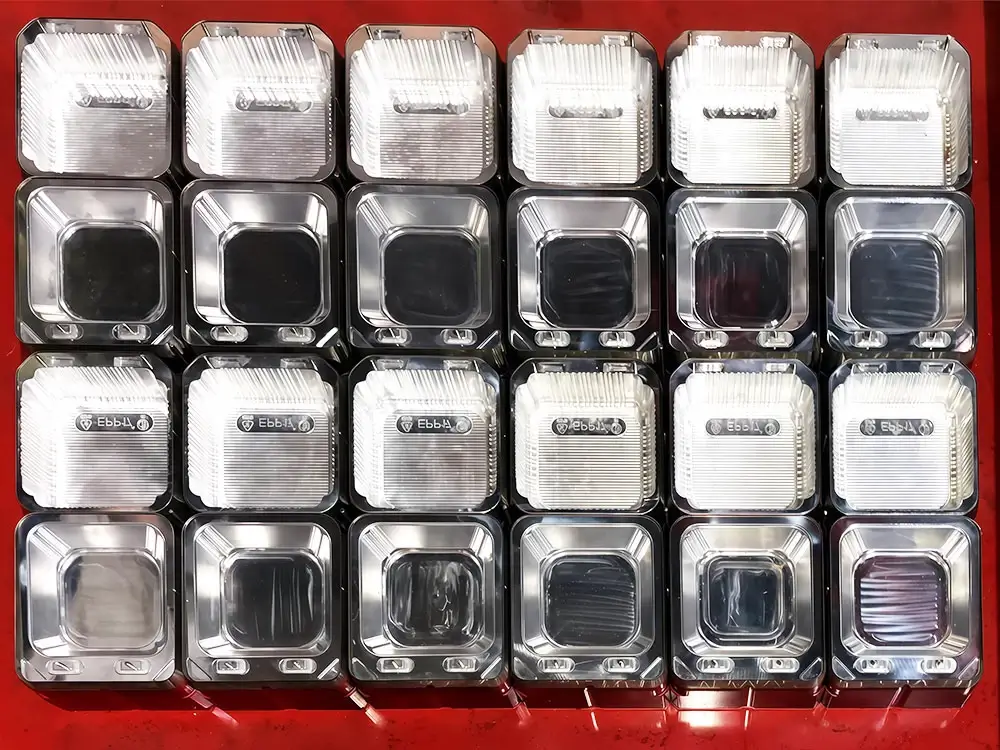 The plastic thermoforming machine efficiently processes BOPS, PET, HIPS, PS and PVC roll sheets into various disposable packaging products, including cookie trays, lids like paper bowl lids, lunch box lids, plastic cup lids, bakery tray and other containers. It integrates feeding, heating, forming, cutting, and stacking into one seamless operation, delivering high productivity and consistent quality.